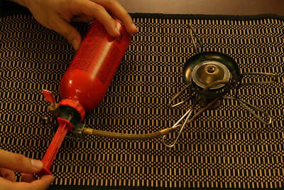 Then pump up the fuel bottle to pressurize it. I find that 10-15 pumps is enough. If you find that the pressure is low, you can always pump it up some more while the stove is burning.